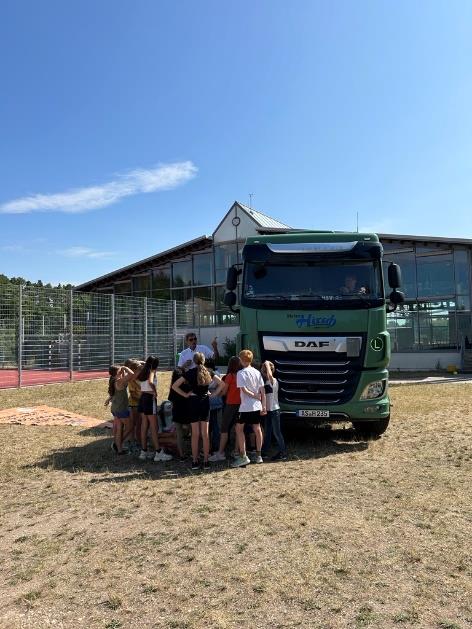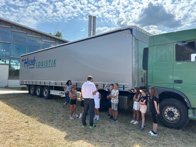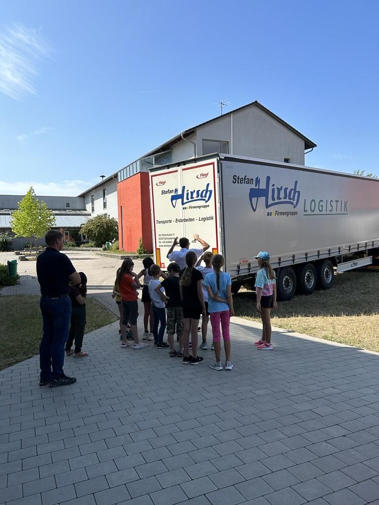 Auf Initiative der Stefan Hirsch GmbH & Co. KG aus Schnaittenbach, der auch den Lkw stellte, demonstrierte der LBT-Geschäftsführer für Niederbayern/Oberpfalz, Harald Sentner den Kindern anschaulich mit dem Lkw und einer Toter-Winkel-Plane die Gefahrenpotentiale durch den Toten Winkel. Dass auf der Plane die komplette Gruppe Platz hatte und damit dem Lkw-Fahrer verborgen blieb, sorgte doch für einiges Erstaunen. Dazu ergänzt Sentner: „Selbst die Profis, also die Lkw-Fahrer, sind immer wieder verblüfft, wenn sie sehen, wie viel sie nicht sehen.“